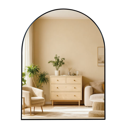 The Camden Arched Wall Mirror – 30” x 36” Black Metal Frame
