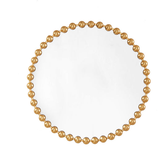 Gold Beaded Round Wall Mirror – 36” Decorative Accent Mirror