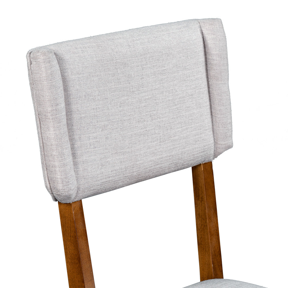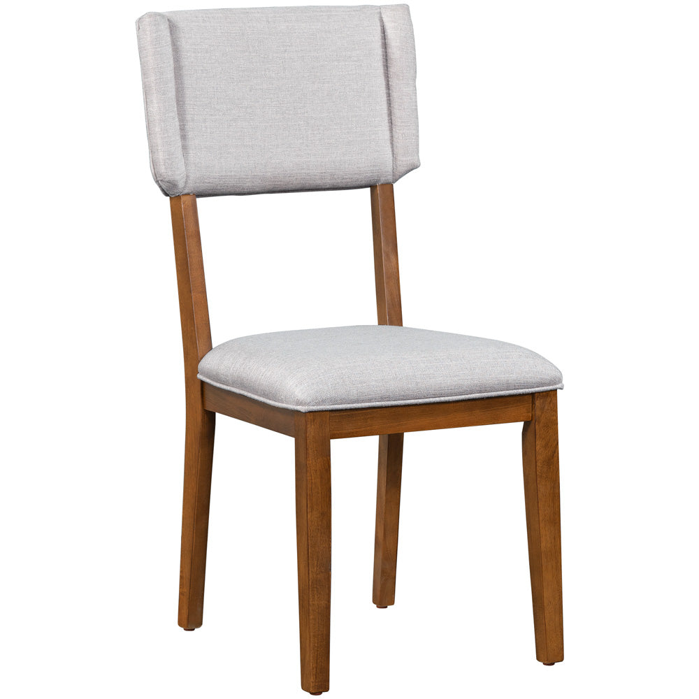 Transform your dining space with the Mela 5-Piece Solid Wood Dining Table Set. The sleek rectangular table with a rich walnut finish accommodates up to six people, creating the perfect setting for family meals or dinner parties. The four linen upholstered chairs provide comfortable seating while adding a touch of elegance.