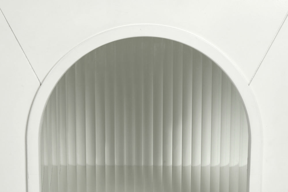 The versatile 65" Brevy TV Console offers both style and functionality. Use it as a console cabinet or sideboard. Featuring ample upper and lower storage shelves for all your media needs enclosed with elegant cabinet doors. Boasting arched glass accents and gold plated accents for a touch of luxury. Perfect for TV screens up to 65 inches.