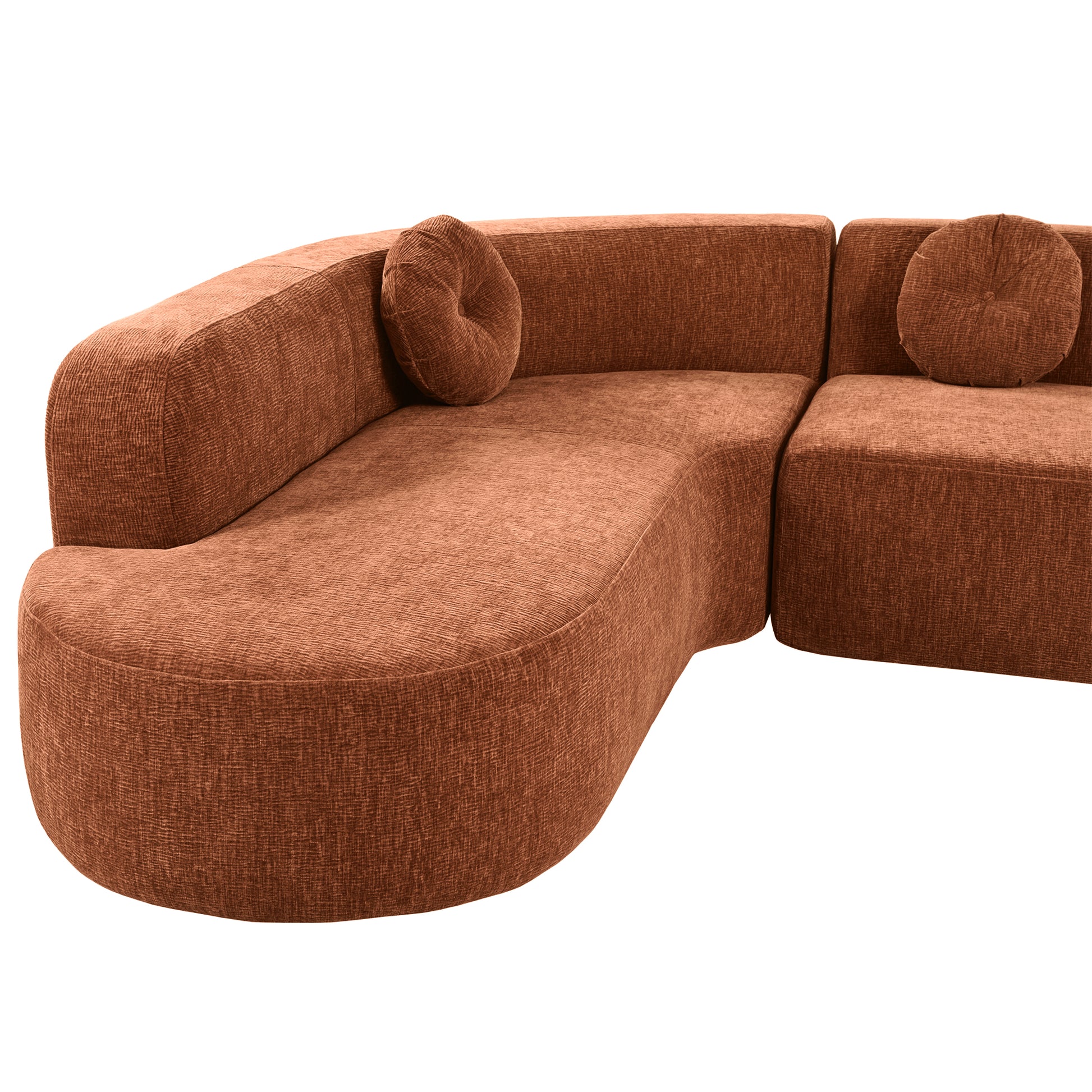 122” Modern Curved 4-Seat Sectional With Accent Pillows, Burnt Orange