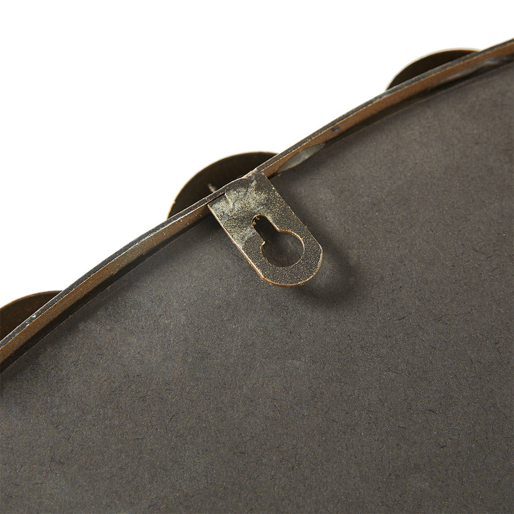 Add a touch of modern glamour to your home with this stunning gold beaded round wall mirror. Designed with a sculptural iron frame featuring a series of textured metallic beads, this mirror brings both dimension and sophistication to any room. The antique gold finish adds warmth and elegance, making it the perfect statement piece for entryways, dining areas, or living spaces. Its generous 36-inch diameter offers both decorative appeal and everyday function, reflecting light beautifully to open up your space.