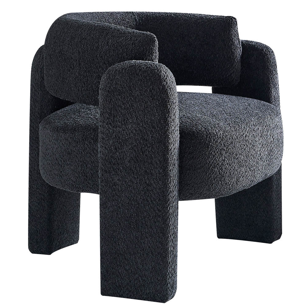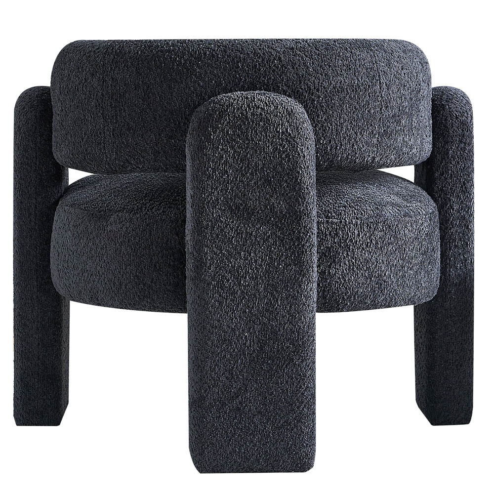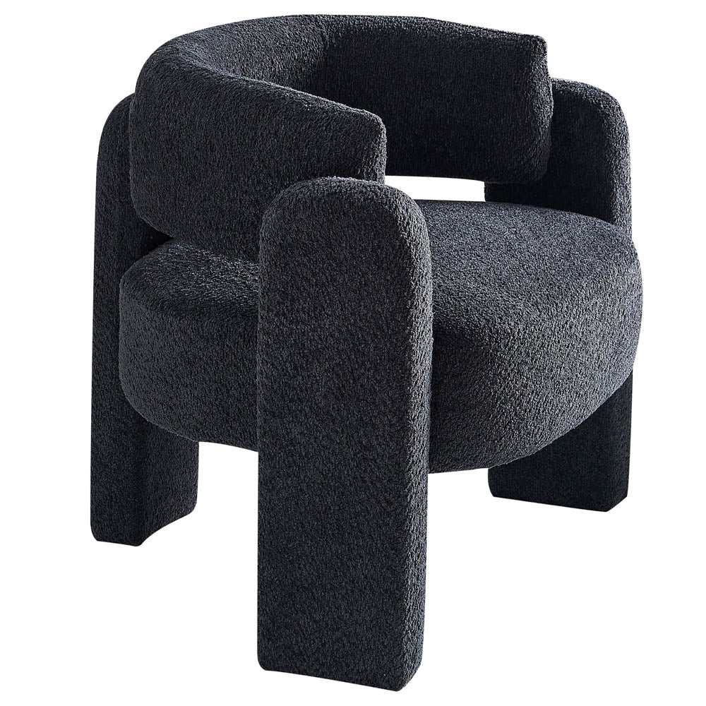 Experience modern elegance with our 34.65" Amber Accent Chair in a stunning dark grey hue. Its eye-catching silhouette and boucle upholstery will add a touch of sophistication to any room.