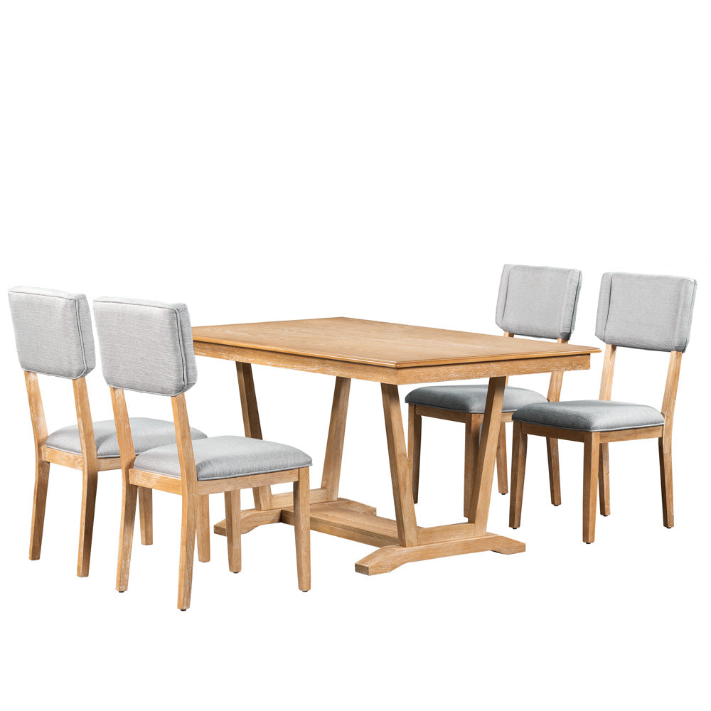 Mela 5-Piece Solid Wood Dining Table Set, Natural