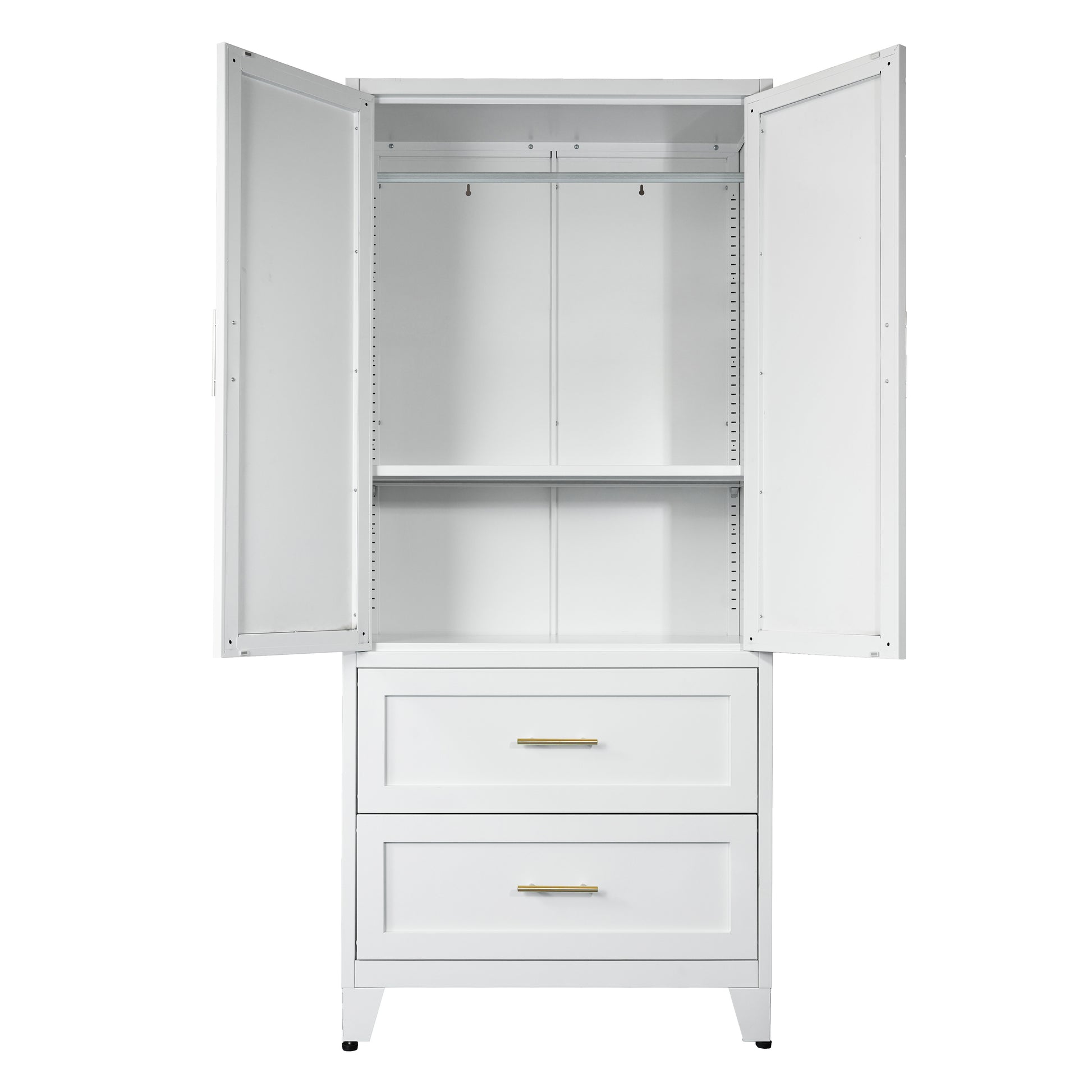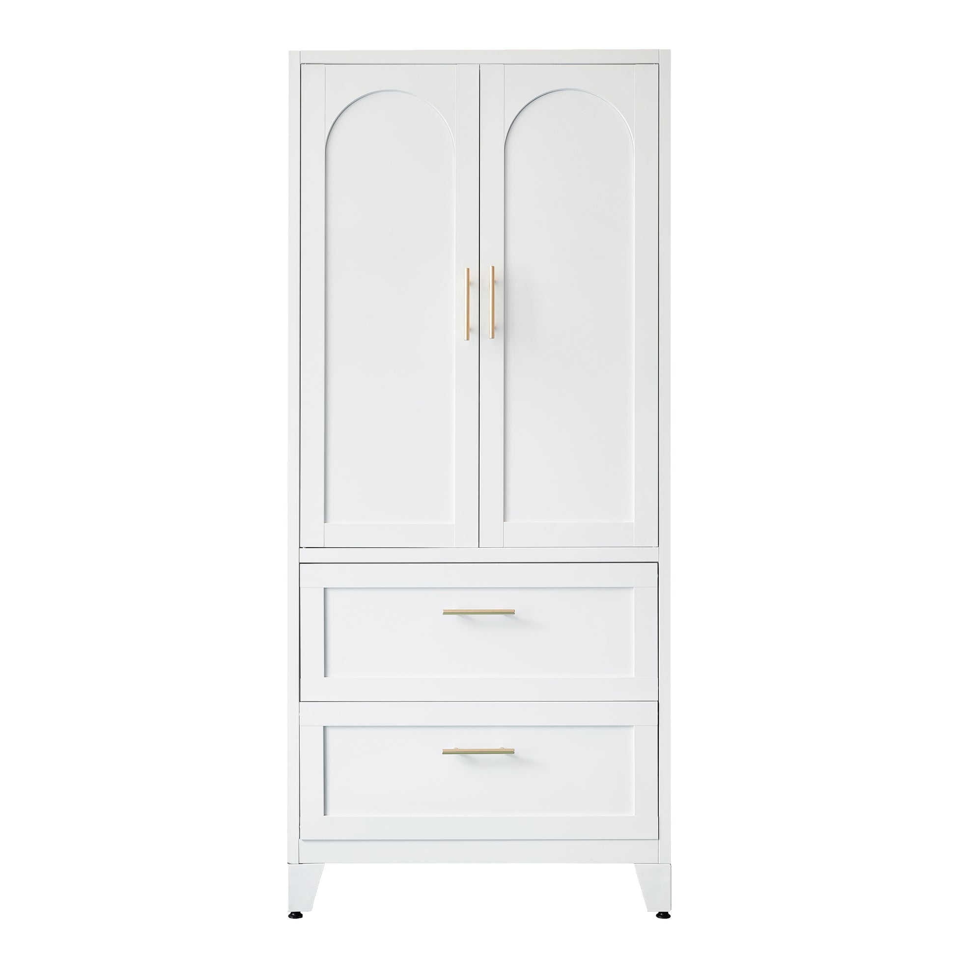 Bring effortless organization and refined style into your space with the Harper Tall Storage Wardrobe. Crafted from durable steel with a smooth white finish, this wardrobe delivers both strength and sophistication. Two spacious drawers provide easy access to folded garments and accessories, while the interior hanging rod keeps clothing neatly organized and wrinkle-free. Designed with clean lines and a soft, modern silhouette, this versatile piece offers a thoughtful balance of concealed storage.